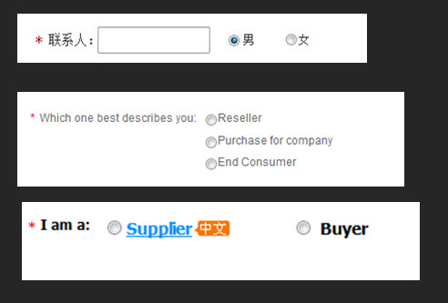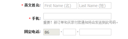 ②明确的说明哪些是必填,哪些是可选?(必填的要有 * 号,可以在顶部加上Fields marked with an asterisk * are required.这样一句话,其实也可以不加,因为能开机的都知道*是必填项,但我说不过PM只好加上了)