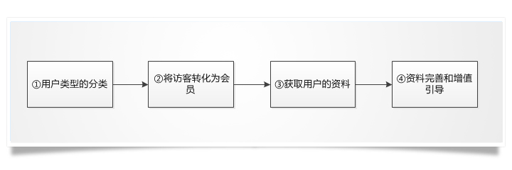 注册的需求大概可以分为四个步骤:①用户类型的分类 ②将访客转化为会员 ③获取用户的资料 ④资料完善和增值引导