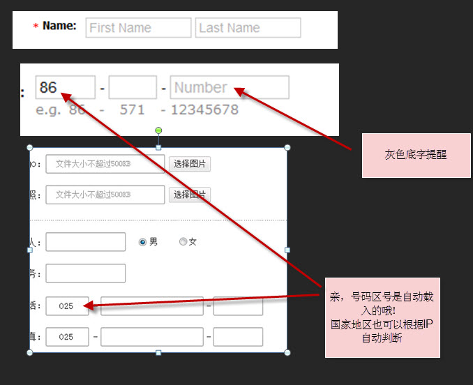 1. 根据IP分类国内外用户,然后根据地区习惯填写相对应的表单。