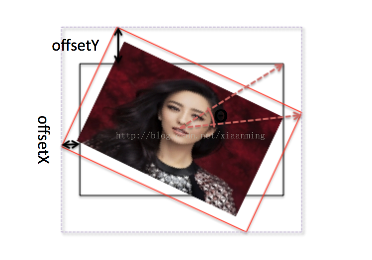 上面的图忽略了控制旋转,缩放图标,黑色的框是开始的View的大小,而经过旋转之后,VIew的大小变成最外层的虚线框了,所以我们需要调用adjustLayout()方法来重新设置View的位置和大小,接下来就是设置Matrix了
